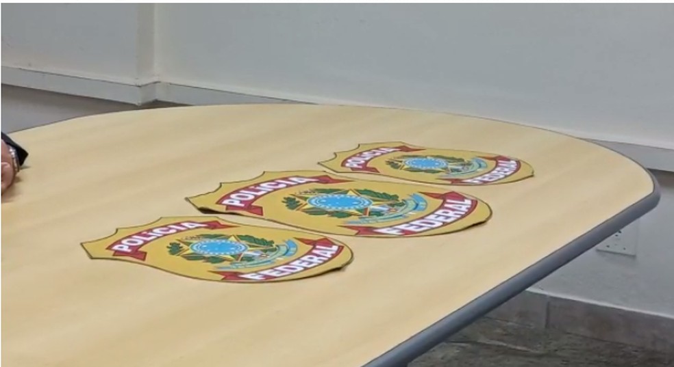 Durante as buscas dentro da casa dos criminosos, a polícia encontrou adesivos com o escudo da Polícia Federal (PF).